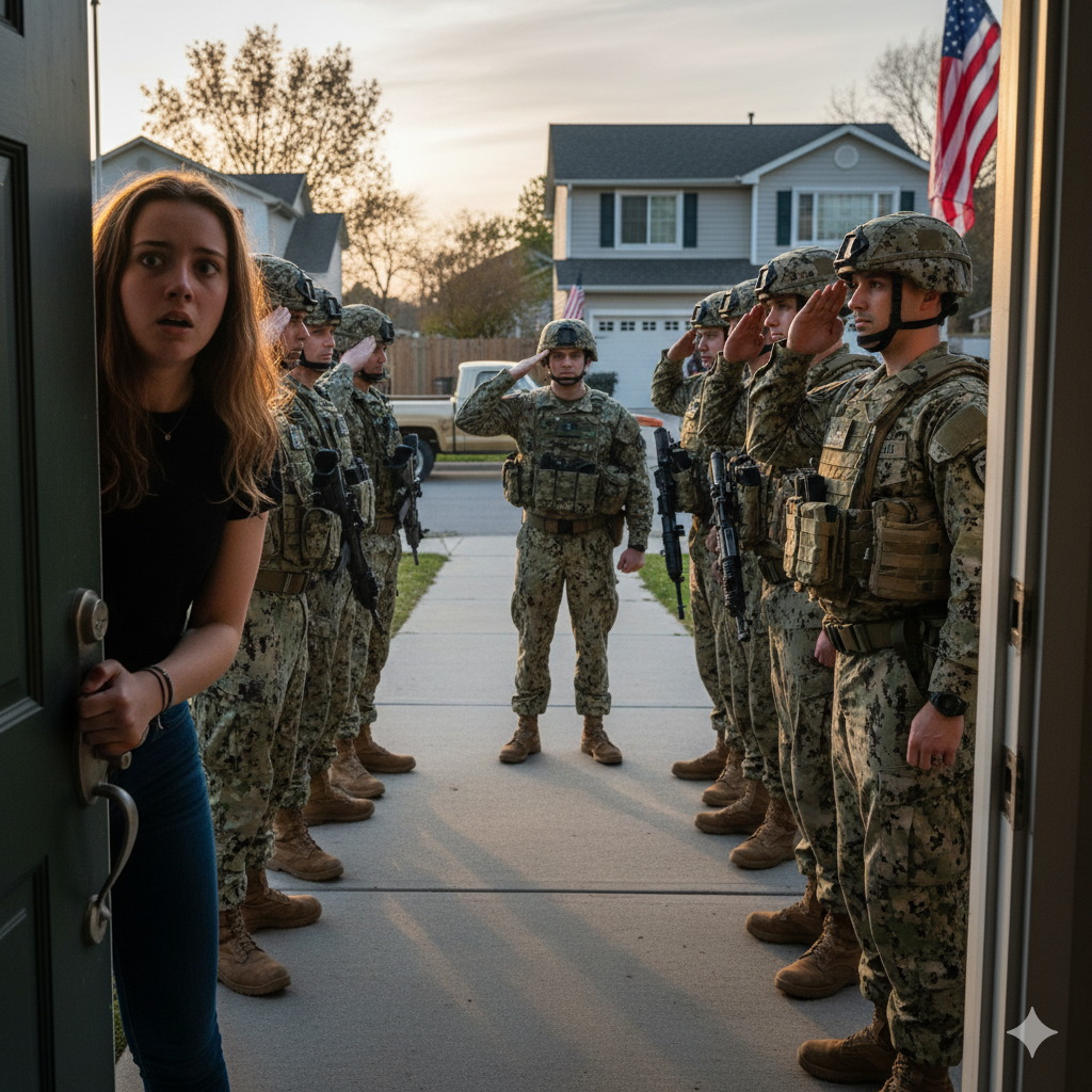 Behind him, my mother appeared — pale, trembling, speechless for the first time in my life. “What—what is going on?” she stammered. “She’s just a girl! She doesn’t belong to the military!”